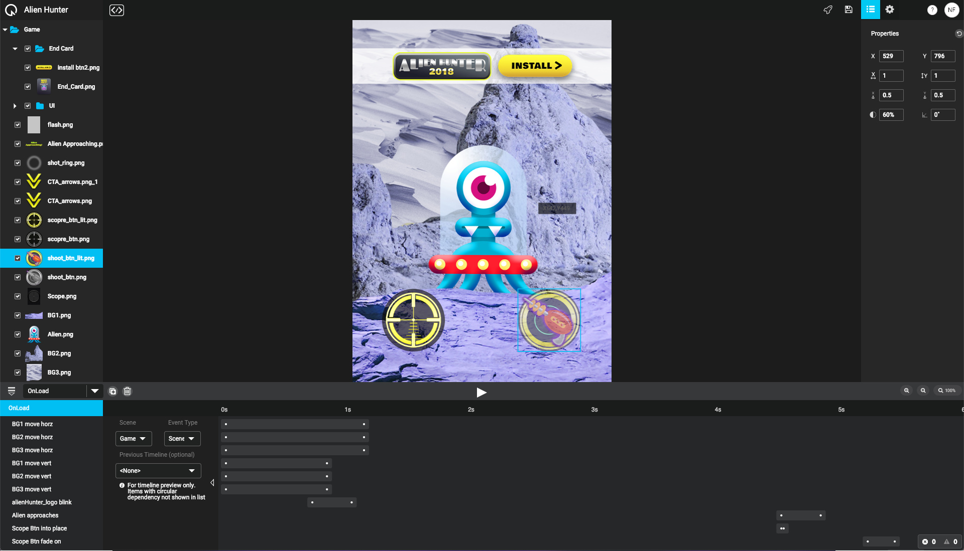 Introducing Quest.ai – the one-stop solution for rapid phaser game development. Design your game, throw in your assets and Quest produces pixel perfect, production ready game UI for you in a jiffy. Add in your animations in our visual timeline, include media assets, even write game logic right in the browser and Quest will generate necessary sprite and audio sheets, optimize the experience, make it work across all devices and deploy it to an edge-cached CDN to directly access via URL.